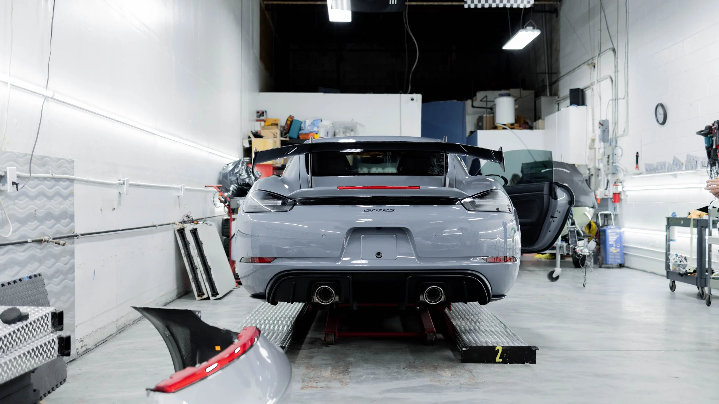 Front bumper, headlights, foglights (if applicable), fenders, hood, mirrors, a-pillars, roof strip, door jams, door cups, side skirts, and partial quarters